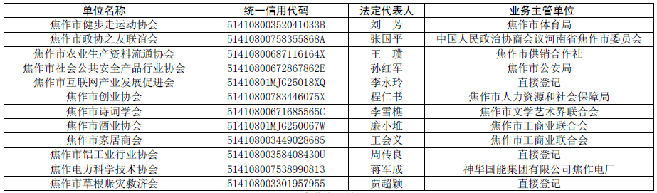 经查,下列社会组织已连续2年未参加年检或2020年度年检不合格且2021年度未参加年检,根据国务院《社会团体登记管理条例》第三十条、三十一条,《民办非企业单位登记管理暂行条例》第二十五条、二十六条与《河南省民政行政处罚自由裁量标准适用规则》的规定,拟给予撤销登记的行政处罚。自本公告刊登之日起60日内当事人享有陈述、申辩和要求听证的权利。逾期未提出的,视为放弃上述权利,焦作市民政局依法作出行政处罚决定。