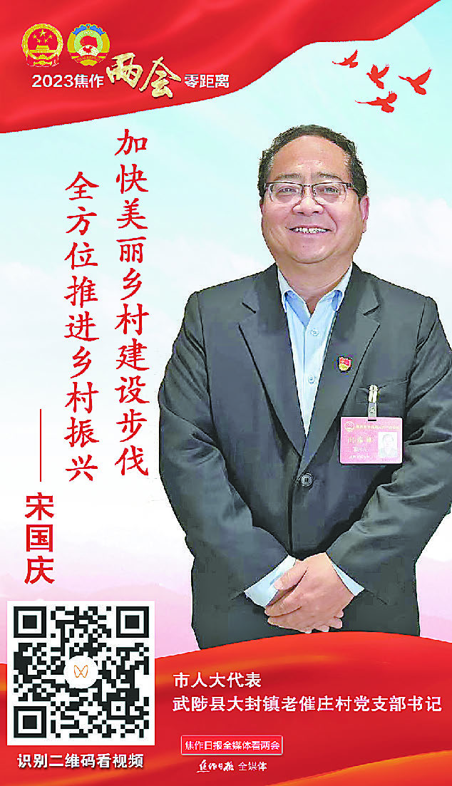 作为来自基层农村的人大代表,宋国庆说,将围绕报告中提出的“全方位推进乡村振兴”这个总体部署和要求,组织老催庄村全体党员和群众深入学习、深入领会、深入讨论,紧紧围绕“五星”支部创建这个主题,带领全体村民全力以赴,努力做到“三个提升”,即提升村庄基础设施建设水平、提升现有粮食作物品质和怀药种植加工水平、提升村集体经济发展水平,进一步聚焦农业农村现代化,加快美丽乡村建设步伐,切实增强群众幸福感、获得感。