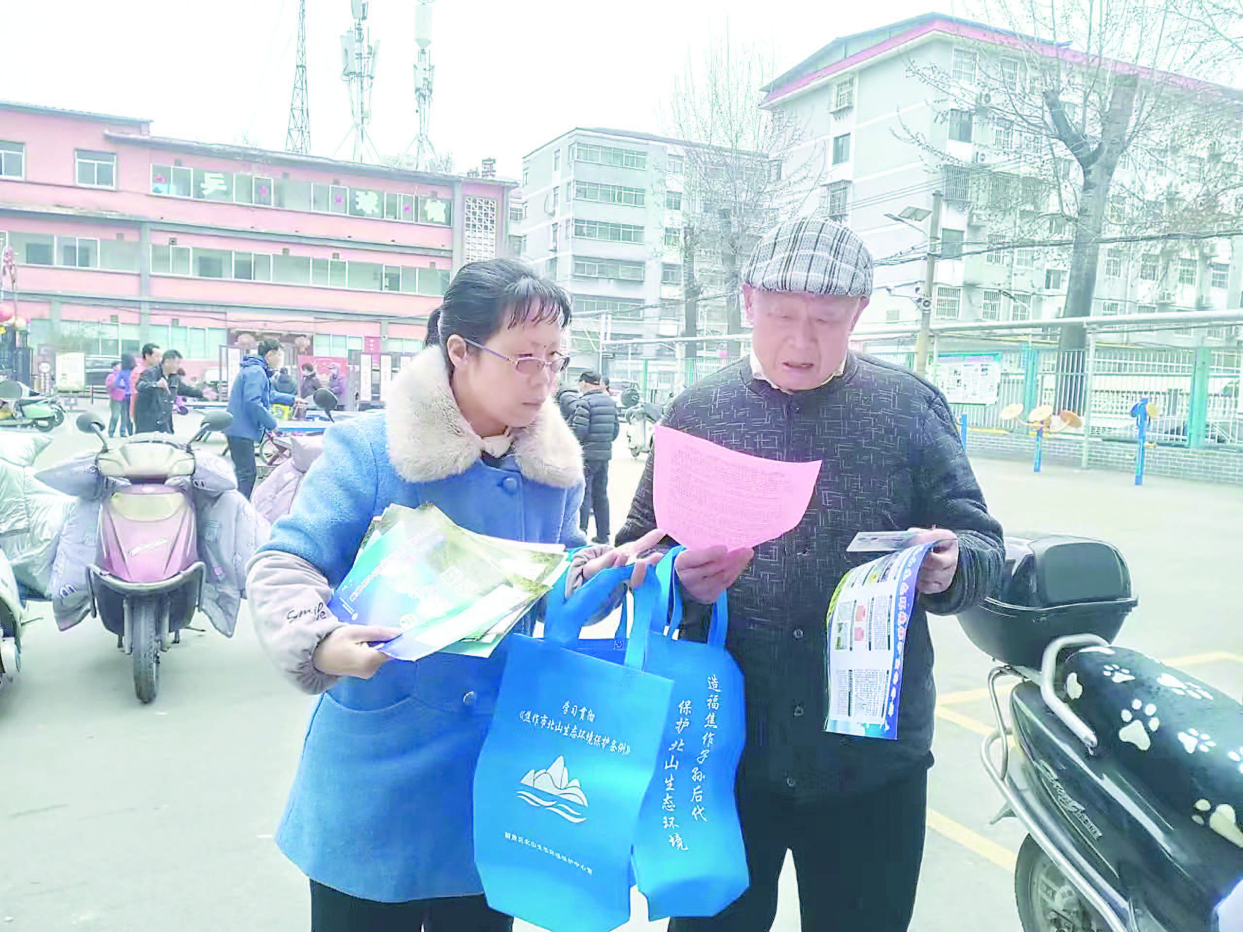 北山生态环境保护宣传进社区。本报记者 张 苗 摄