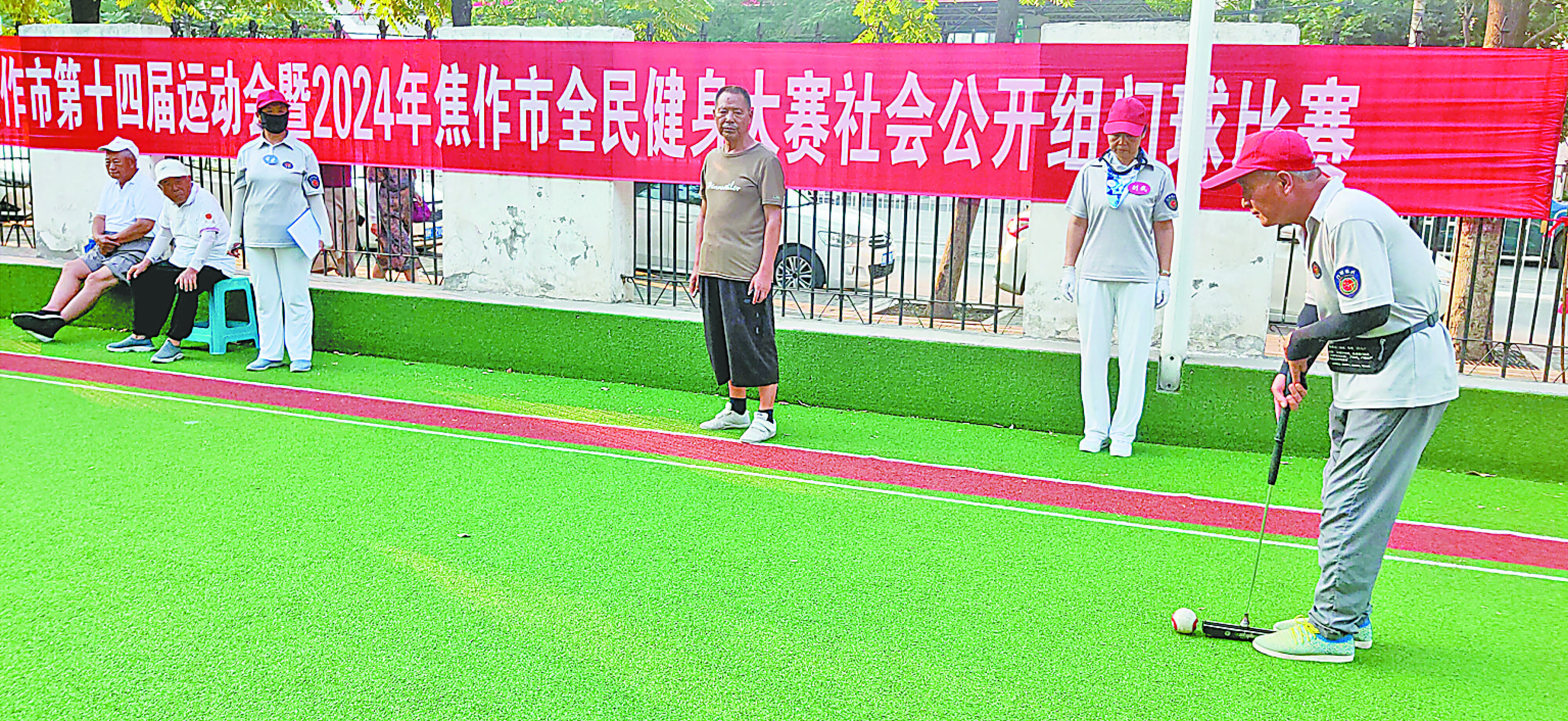 图① 6月16日,门球场上,运动员认真比赛。