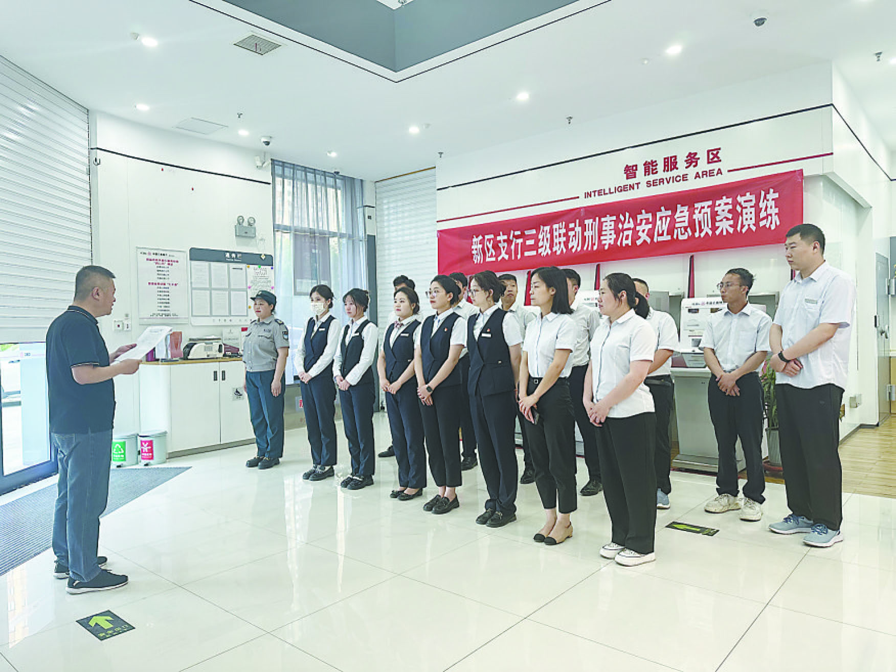 图② 近日,工行焦作新区支行开展三级联动刑事治安应急预案演练,通过营业网点防撬盗演练,进一步提高全体员工应对突发事件的应急处置能力。
