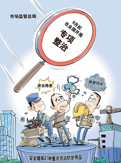记者9月4日从市场监管总局获悉,9月起在全国开展重点劳动防护用品安全隐患专项整治工作,聚焦安全帽、自吸过滤式防毒面具、自吸过滤式防颗粒物呼吸器等21种重点劳动防护用品及其安全性能,覆盖生产、流通、使用、检验等领域。