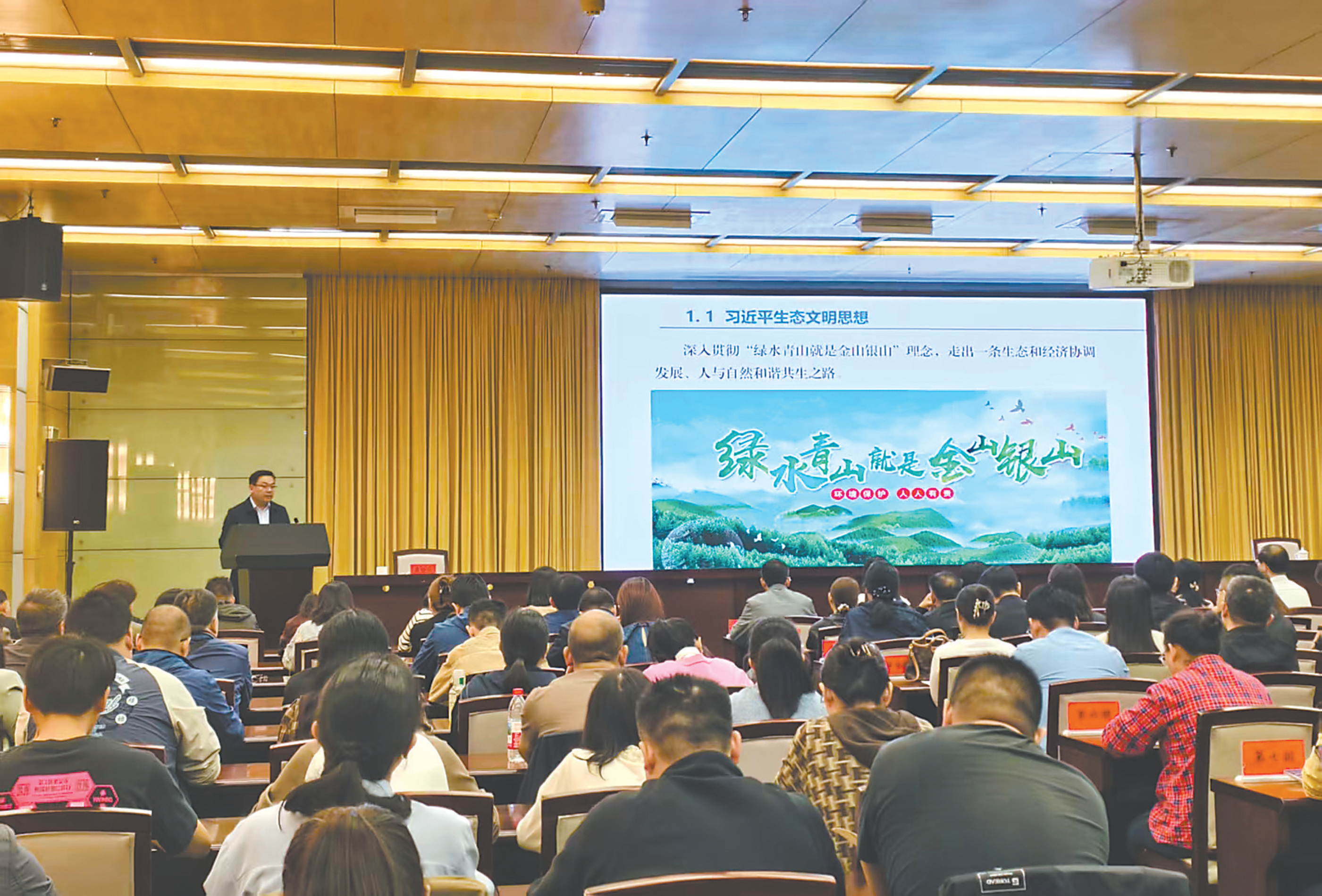 9月25日上午,市会议中心一间会议室内,投影幕布上“聚焦生态环境保护,发挥好党组织党员两个作用”的主题字样格外醒目,来自各市直机关的党员干部对专题授课充满期待。