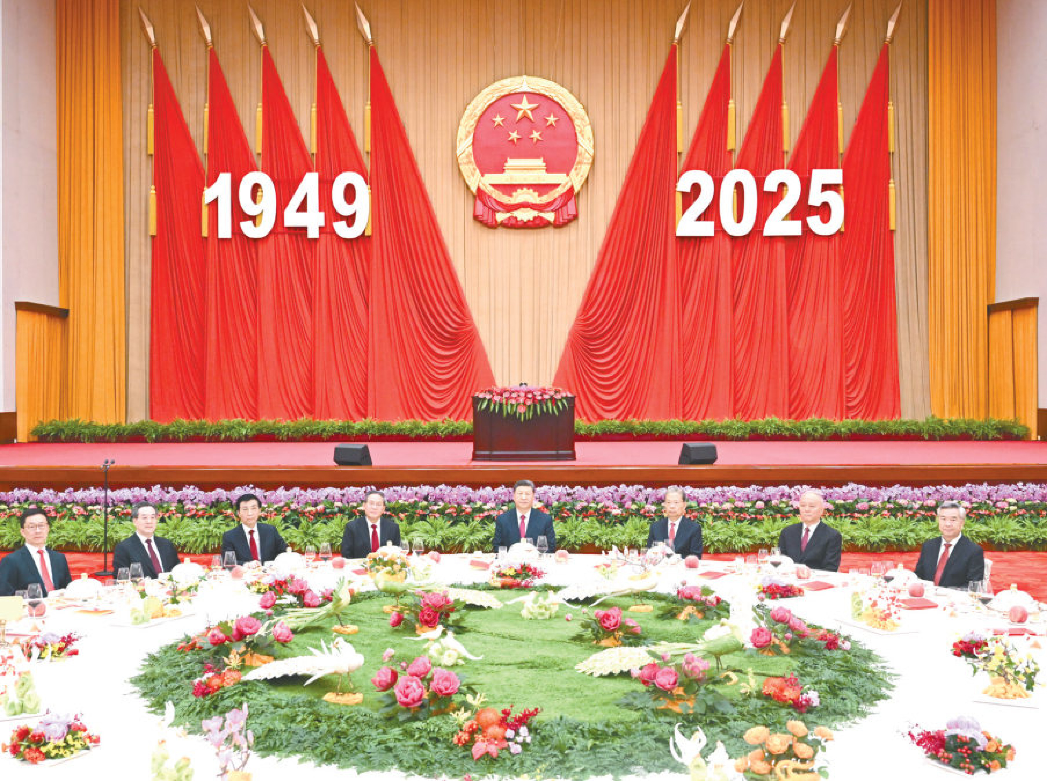 九月三十日晚,庆祝中华人民共和国成立七十六周年招待会在北京人民大会堂举行。习近平、李强、赵乐际、王沪宁、蔡奇、丁薛祥、李希、韩正等党和国家领导人与中外人士欢聚一堂,共庆中华人民共和国华诞。
