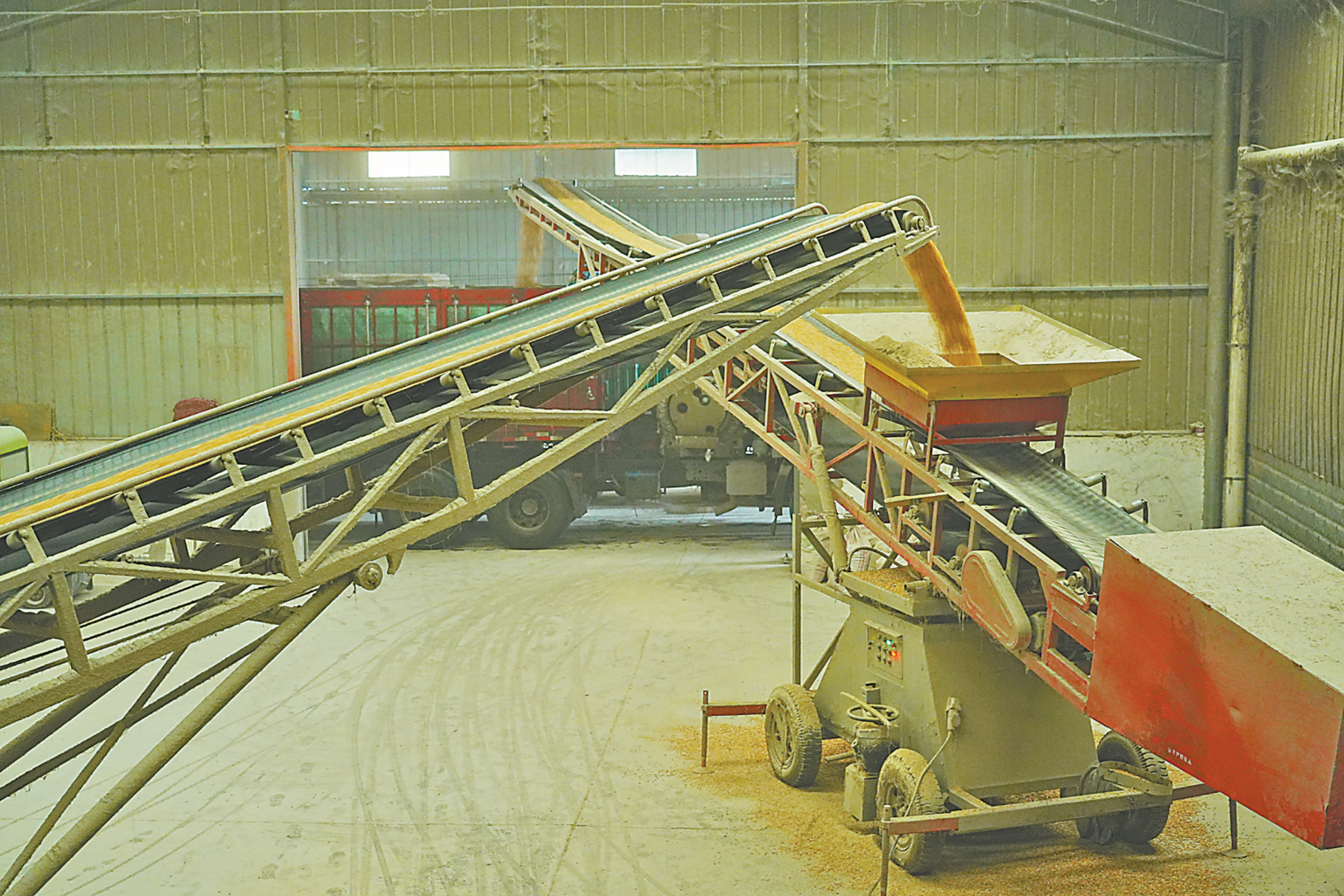 10月18日,孟州市谷旦镇田田圈农业服务中心烘干车间内,烘干后的玉米经传送带转运至运输车辆。为应对阴雨天气,孟州多家粮食烘干点按需调整作业,确保粮食应收尽收、应烘尽烘。