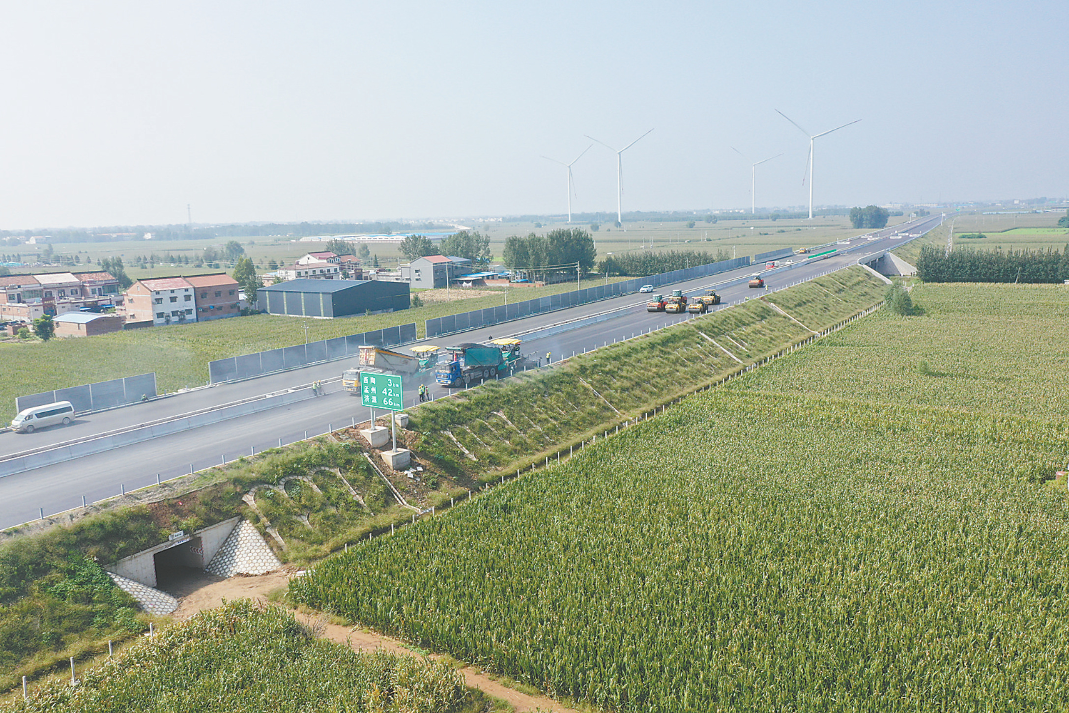10月21日,中交路建承建的沿黄高速武陟至济源段项目交通设施工程正加快推进。