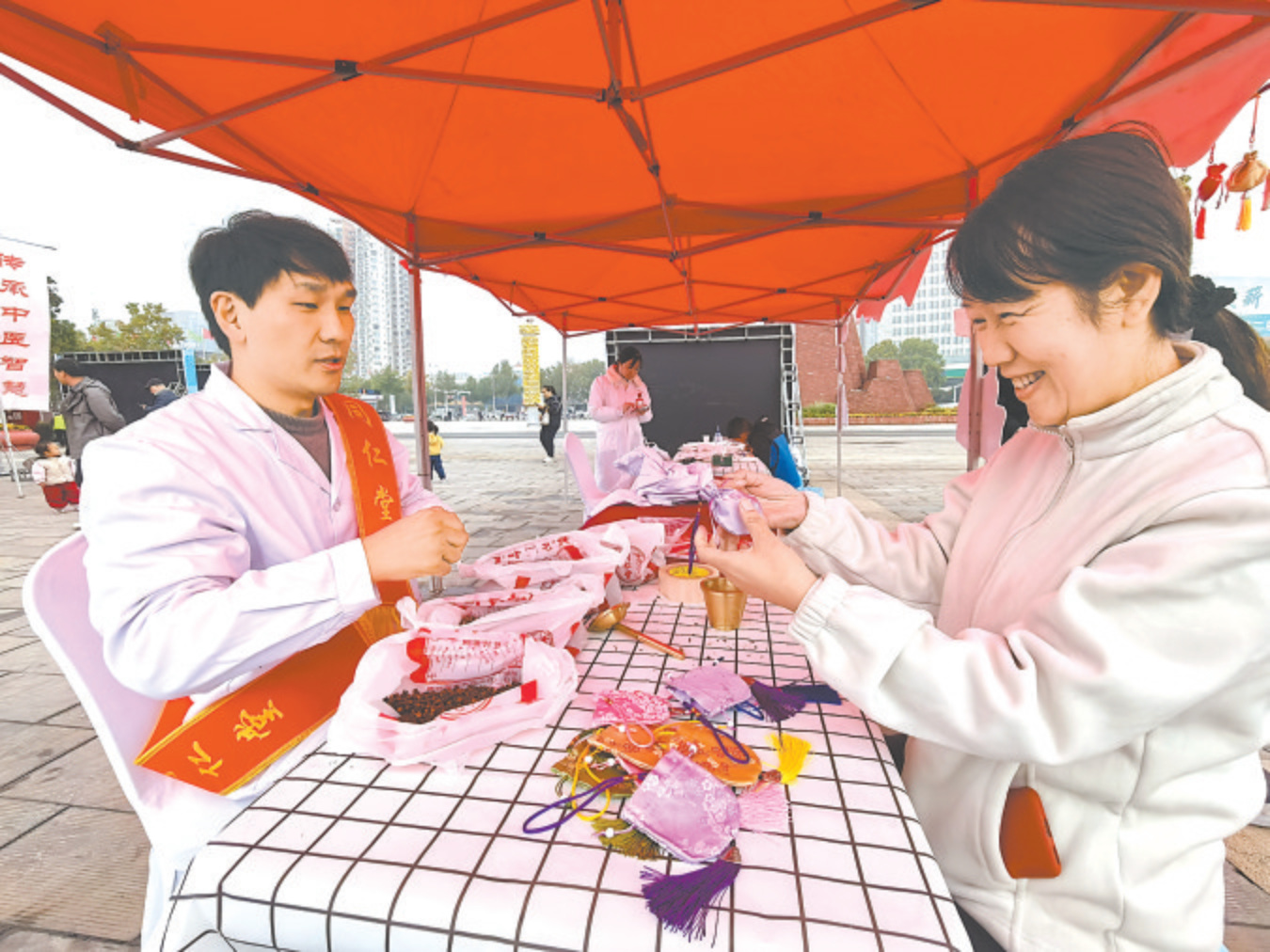 10月25日至26日,由市委宣传部、市卫生健康委、市农业农村局、市文广旅局、市体育局、市商务局、市市场监管局、市园林绿化中心、市爱卫中心主办,市中医院、解放区卫生健康委、山阳区卫生健康委、中站区卫生健康委、马村区卫生健康委、高新区卫生健康服务中心承办的焦作市第二届“中医药文化周”主会场活动在市龙源湖公园举行。现场设置中医专家义诊咨询、中医特色诊疗体验、中医健身功法领学、常见中医药产品展示、中医药文化科普、非物质文化遗产展示等特色活动区,众多市民以“打卡”方式逐项体验,感受名中医专家现场把脉问诊,体验刮痧、针灸、艾灸等中医特色诊疗技术,观看八段锦、五禽戏等中医传统健身功法展示,品尝中医药膳、代茶饮等,近距离感受中医药文化的独特魅力。