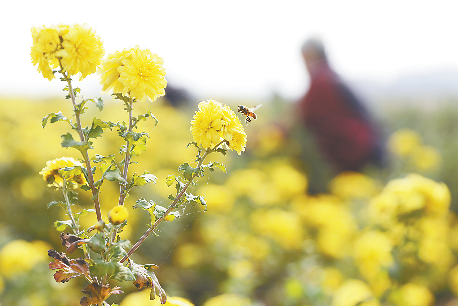 11月5日,河南省焦作市温县黄庄镇西林肇村农民在采摘怀菊花。农历九月,又称菊月。“冲天香阵透长安,满城尽带黄金甲。”唐代黄巢用诗描绘九月菊花盛开、满城金黄的美景。各类各色菊花竞相开放,是人们钟爱的秋季景象。如今,菊花产业更成为不少地区乡村振兴和群众致富的重要渠道。
