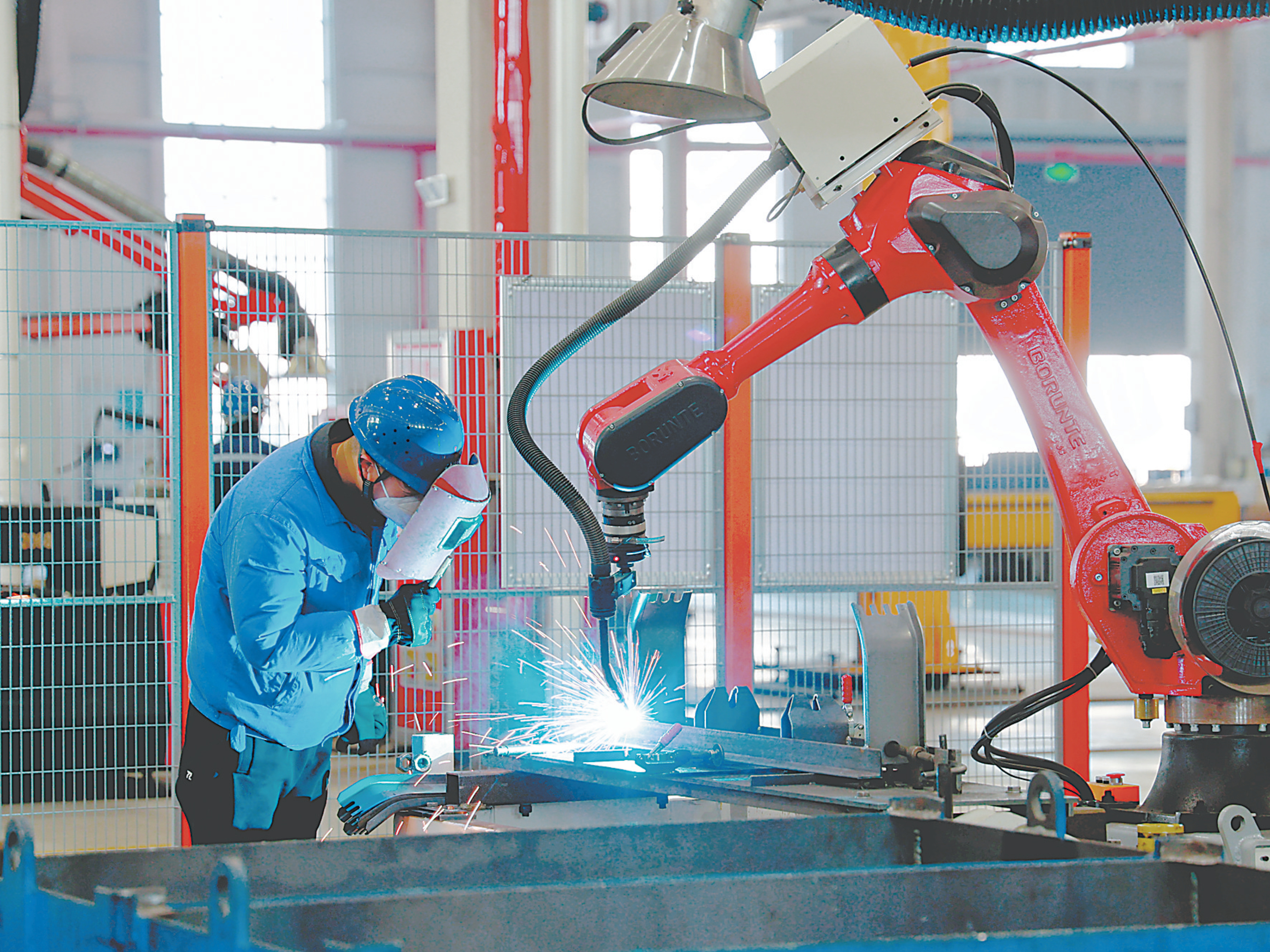 11月28日,焦作神华重型机械制造有限公司生产车间,工人操控焊接机器人实施精准作业。据了解,今年前三季度,该公司实现产值1.5亿元,为完成全年生产任务奠定了坚实基础。