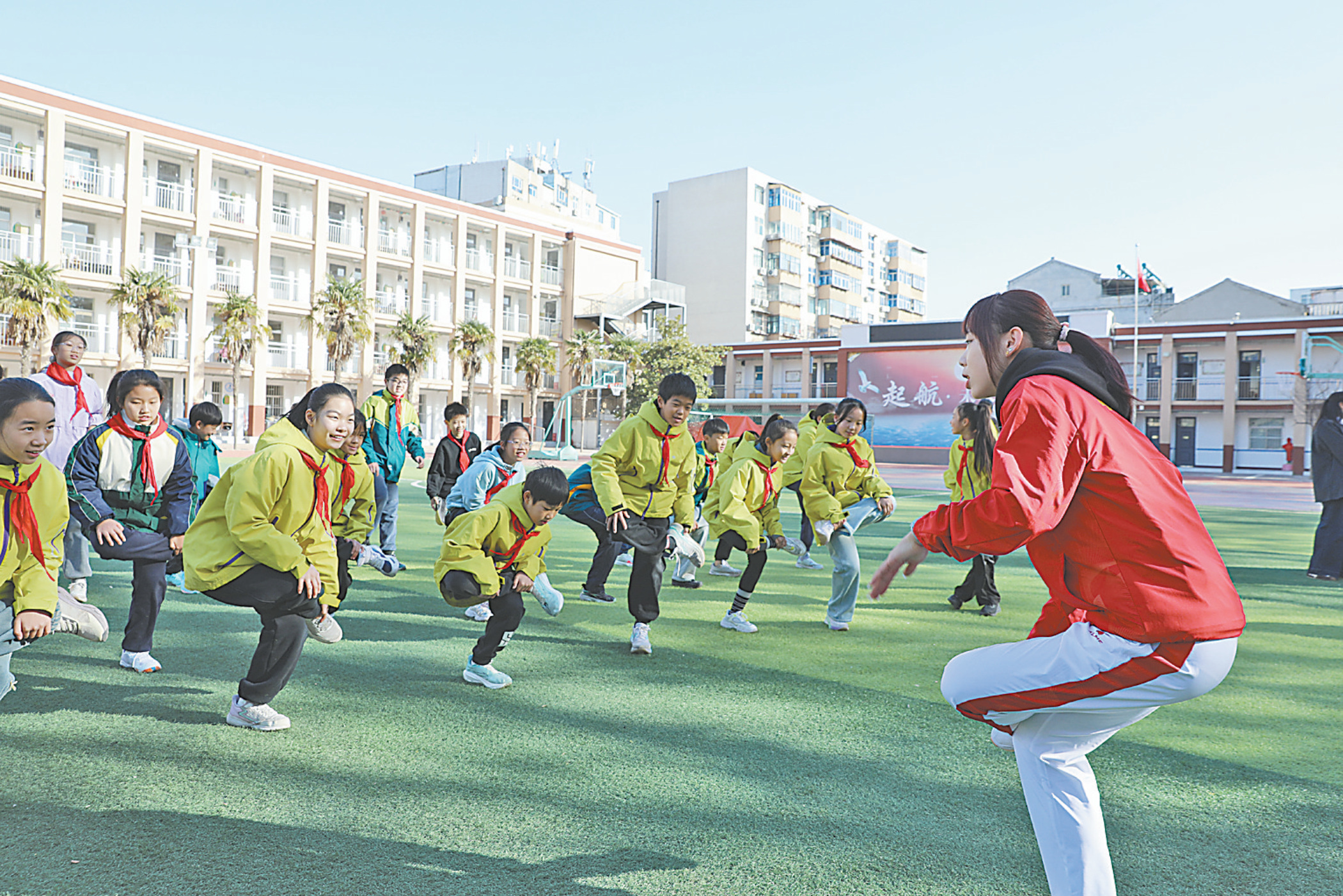 11月26日,第十五届全运会双冠得主梁田田应邀走进解放区环南一小,与全区140名体育教师和120名学生运动员分享成功经验。图为梁田田在指导环南一小运动队训练。