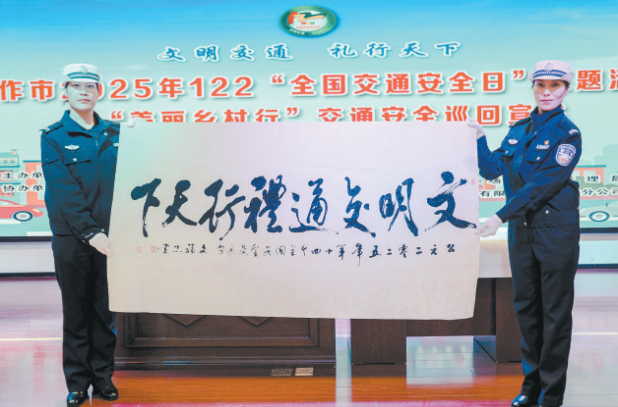 现场观众戴上模拟酒驾状态的眩晕眼镜,切身体会到“酒后失控”的危险;交通安全知识问答则让现场变成流动的“安全课堂”,书法家挥毫写下的“文明交通 礼行天下”八个苍劲大字,将传统文化与时代主题巧妙融合,把活动推向高潮。