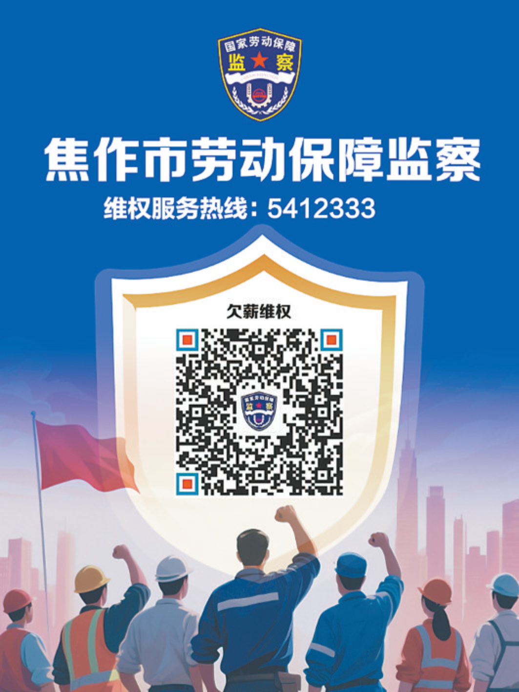 在焦作干活,遇到工资不发、少发,怎么办?焦作市人社局推出“欠薪维权”二维码(左图)。无论您身在哪个工地、哪个企业,只需微信“扫一扫”,即可一键在线举报、投诉。我们将安排专人快速处理,为您依法撑腰,守护您的劳动成果!