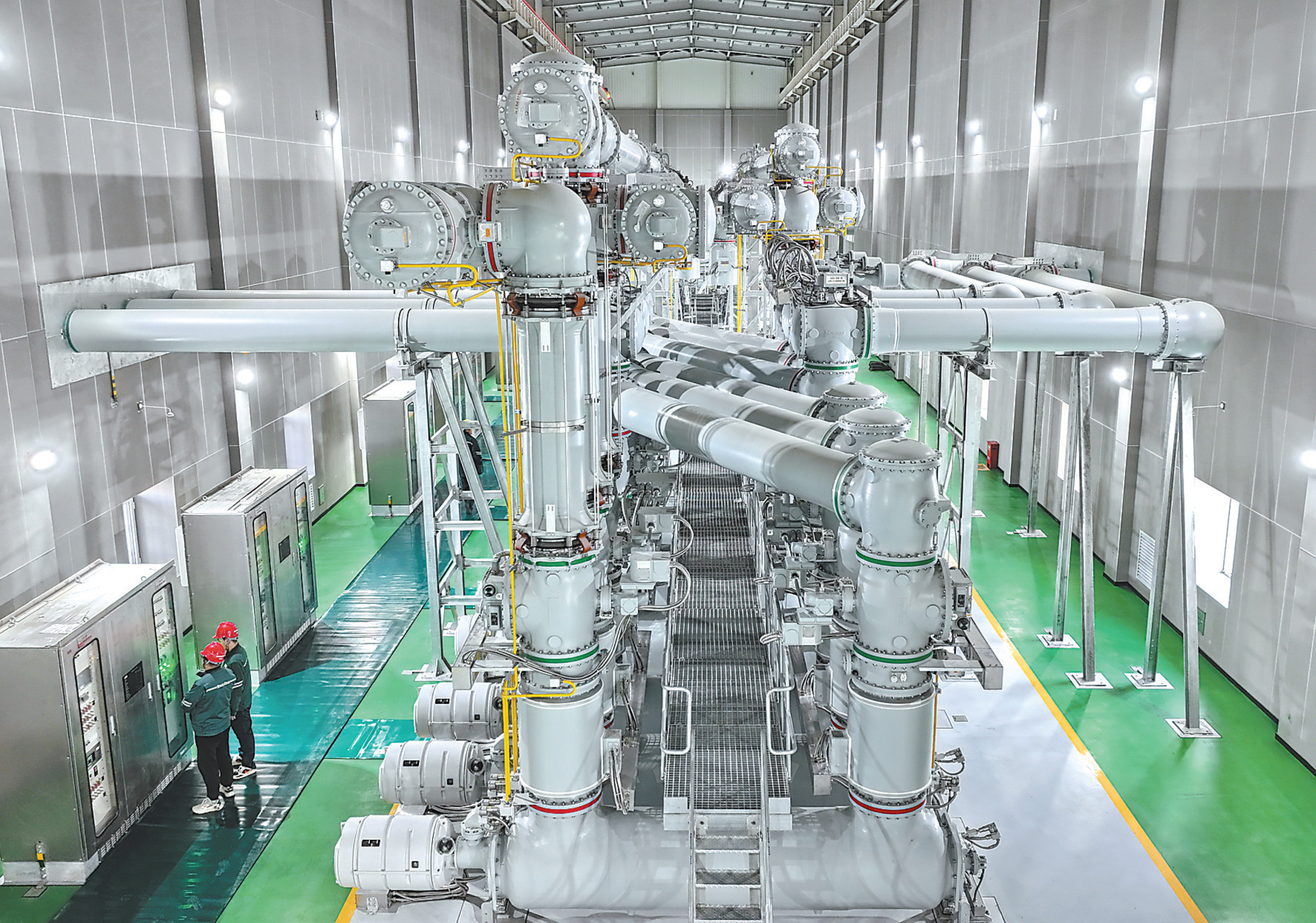 12月6日,在雄安500千伏超高压变电站投运前,工人进行巡检(无人机照片)。12月7日,雄安新区新能源输送通道关键枢纽变电站——雄安500千伏超高压变电站正式投运。据介绍,该变电站是国家“十四五”规划重点项目,是将内蒙古和河北坝上地区风电、光伏发电等清洁能源引入雄安新区的关键站点。