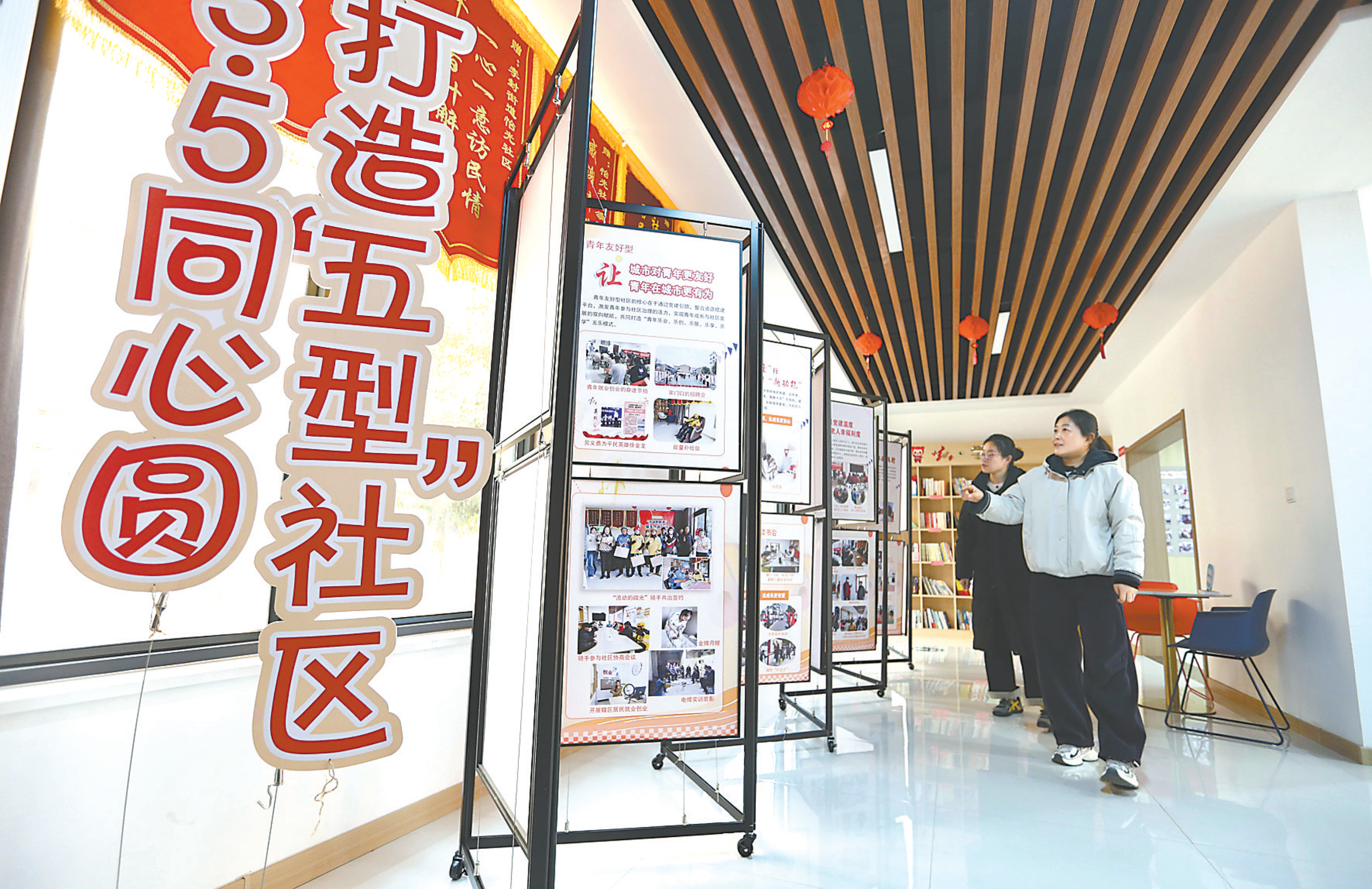 12月8日,居民在观看青年友好、老年友善、儿童友爱、全民健康、环境优美的“五型”社区宣传版面。