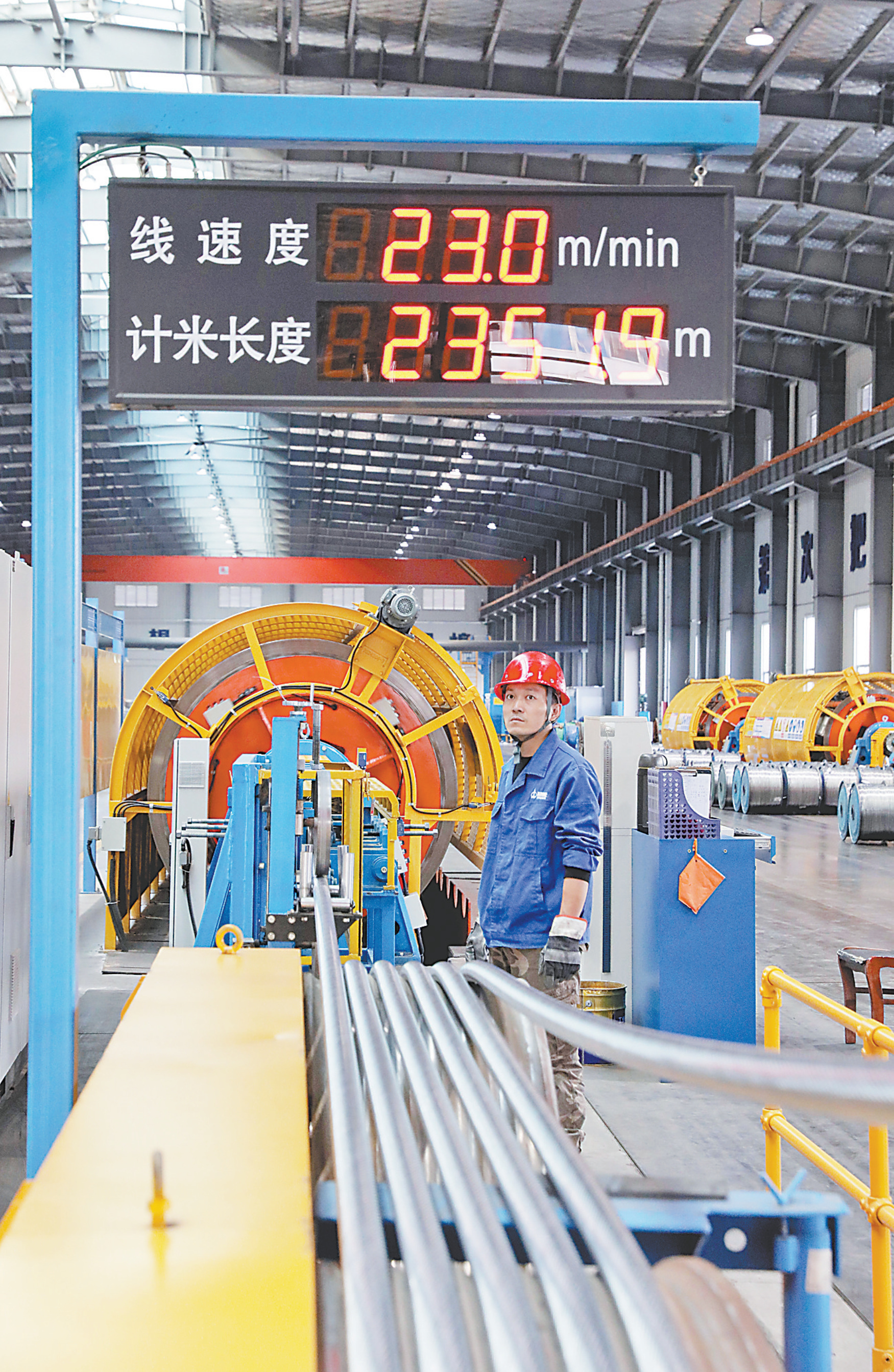 12月9日,位于修武县的汉河电缆有限公司生产车间,工人在生产电缆。该公司主要从事电工圆铝杆(铝合金杆)、圆线同心绞架空导线研发和生产,今年上半年完成产值5.6亿元,同比增加5000多万元。