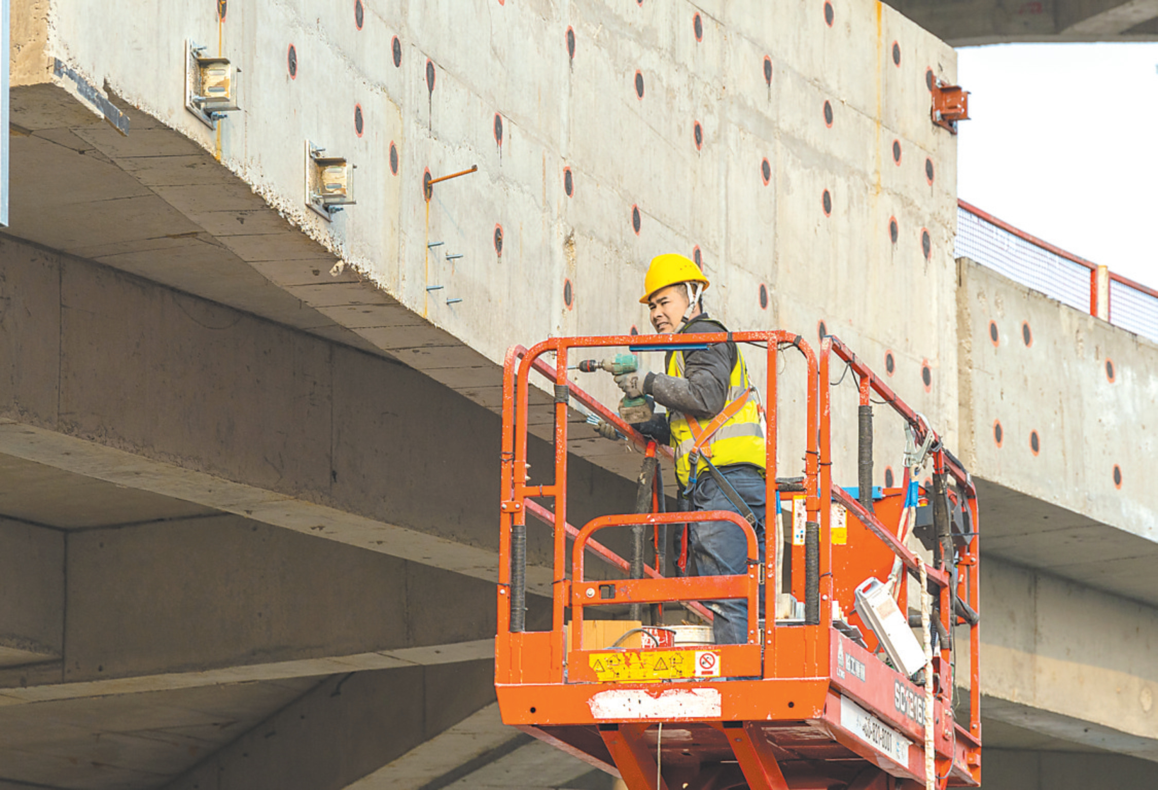 “目前项目主体结构已全面封顶,B区(南楼)二次结构已经完成,正在进行内部装饰装修作业,A区(北楼)二次结构即将收尾。”忙碌间隙,曹敬德向记者介绍。