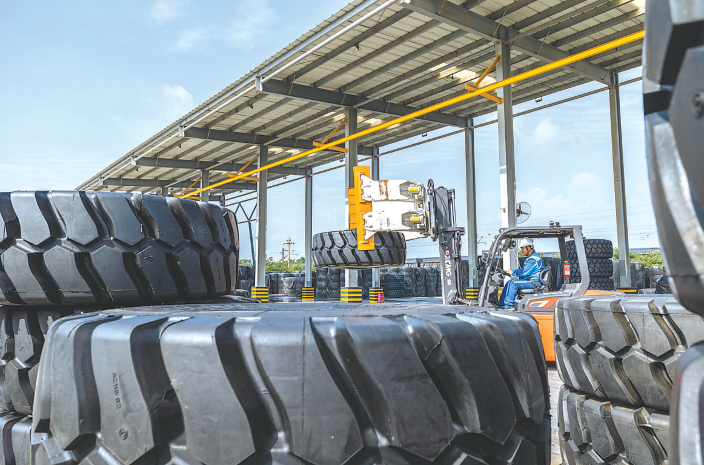 风神轮胎股份有限公司的生产车间里,3个直径不一的巨型轮胎格外醒目。中间个头最大的一个,直径超过4米,正是全球最大的巨型工程轮胎。