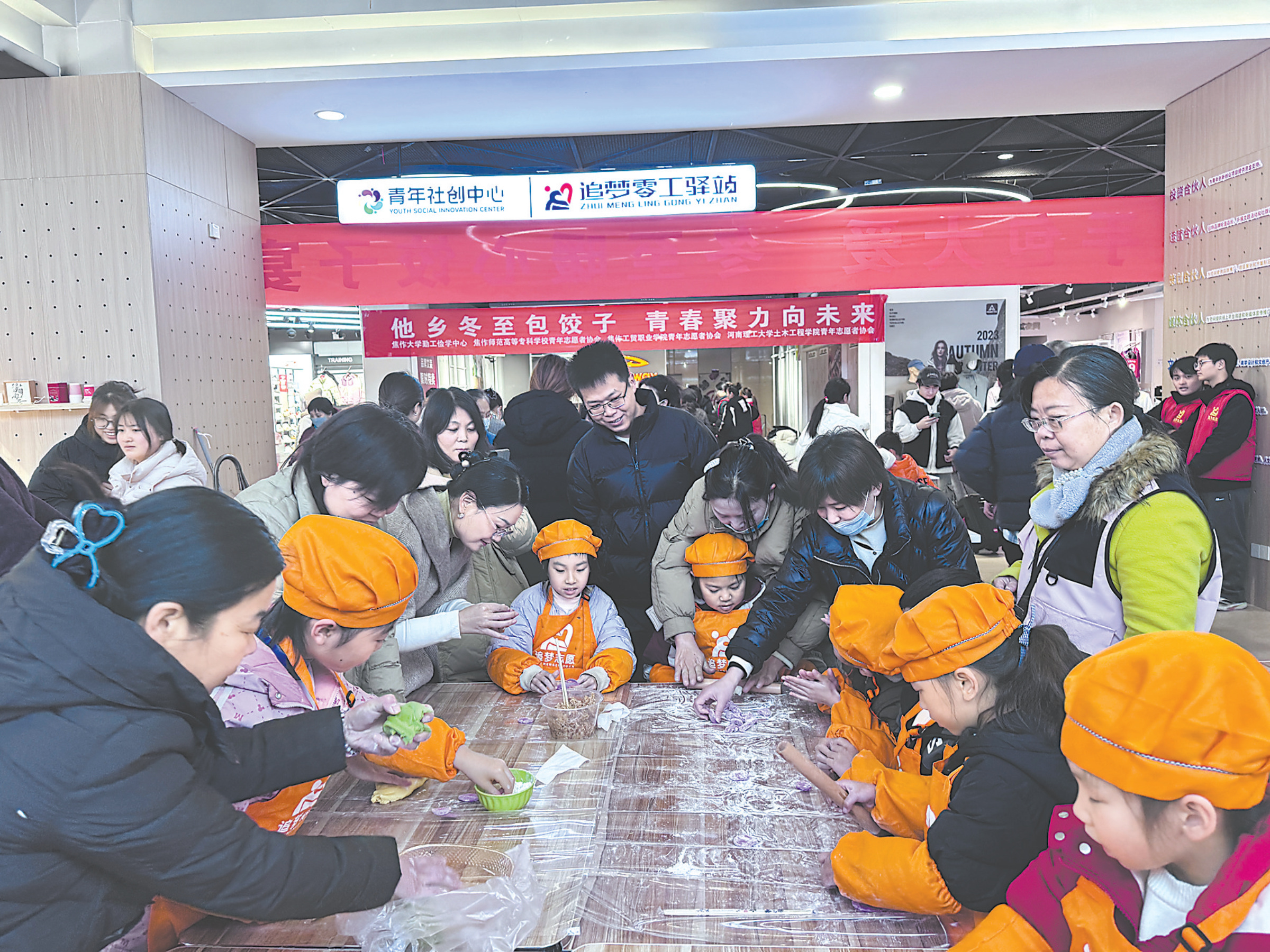 12月21日,山阳区定和街道联合辖区爱心企业、社会团体等,在远大时代商业中心举办冬至饺子宴,以“亲子协作+民俗体验+公益传递”为核心,向环卫工人、新就业群体等城市工作者和异乡学子传递温暖。