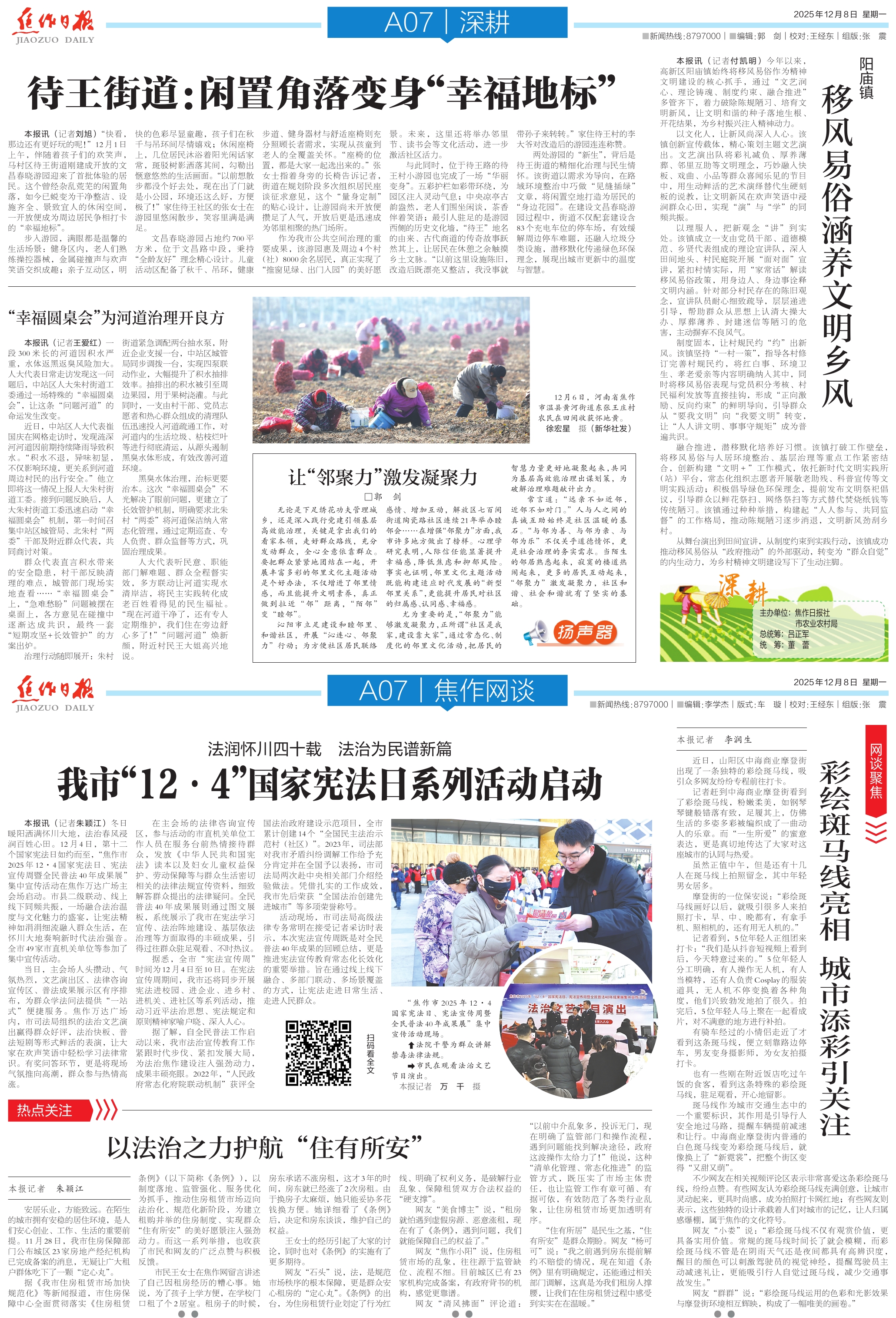 人大代表听民意、职能部门解难题、群众全程督实效,多方联动让河道实现水清岸洁,将民主实践转化成老百姓看得见的民生福祉。“现在河道干净了,还有专人定期维护,我们住在旁边舒心多了!”“问题河道”焕新颜,附近村民王大姐高兴地说。